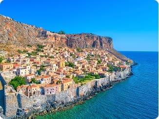 Walk the medieval streets of Monemvasia, a fortified Byzantine town built into the rock, where chapels, mansions, and walls reveal Greece’s layered history from antiquity through the Middle Ages.