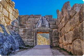 Continue to Mycenae, the powerful Bronze Age center that gave its name to an entire civilization. Explore the citadel, entering through the monumental Lion Gate, and examine its shaft graves, which reveal wealth, artistry, and social organization. Nearby, the beehive-shaped 'Treasury of Atreus' illustrates advances in engineering and the myths that later associated the site with Agamemnon and Homeric legend.