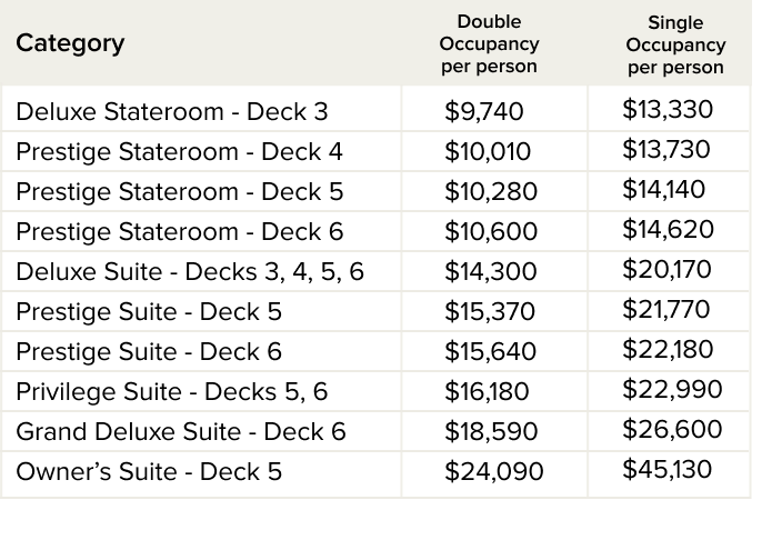 Starting at $9,740 per person
