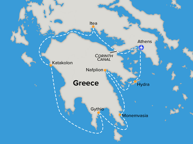 Setting sail on Le Champlain from the ancient splendor of Athens, this round-trip cruise journeys across the glittering Aegean and celebrates Greece’s timeless allure. Walk in the footsteps of the gods at Delphi, a site famous in antiquity and the home of the oracle of Apollo, as well as one of the most impressive sites in Greece. Explore the birthplace of the Olympic Games in Olympia. Stand amid healing history at the Sanctuary of Asklepios in Epidaurus. Wander the stone lanes of Monemvasia, a hidden medieval citadel rising from the sea.