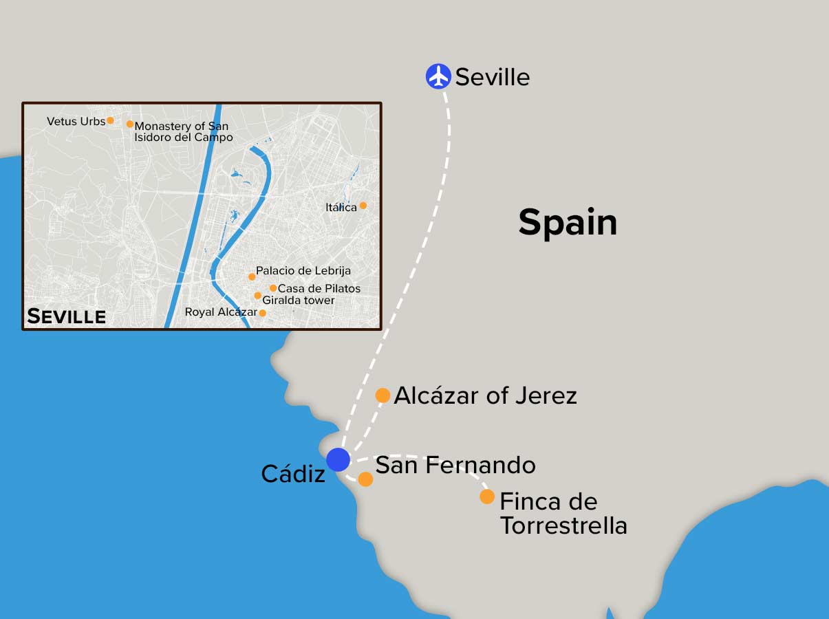 Arrive in Seville today and settle into your centrally located hotel. Late this afternoon, meet your local guide for a walking tour to introduce you to Seville’s rich and diverse cultural history. Stroll the cobblestone streets of the former Jewish quarter. Examine the eclectic architectural styles at the Cathedral and Giralda tower, a UNESCO World Heritage Site and the final resting place of Christopher Columbus. Continue to the Royal Alcázar, the official residence of the Spanish royal family, and the oldest continuously used royal palace in Europe, filled with more than one thousand years of history and art. This evening, gather with your fellow travelers for a welcome dinner at a local restaurant.